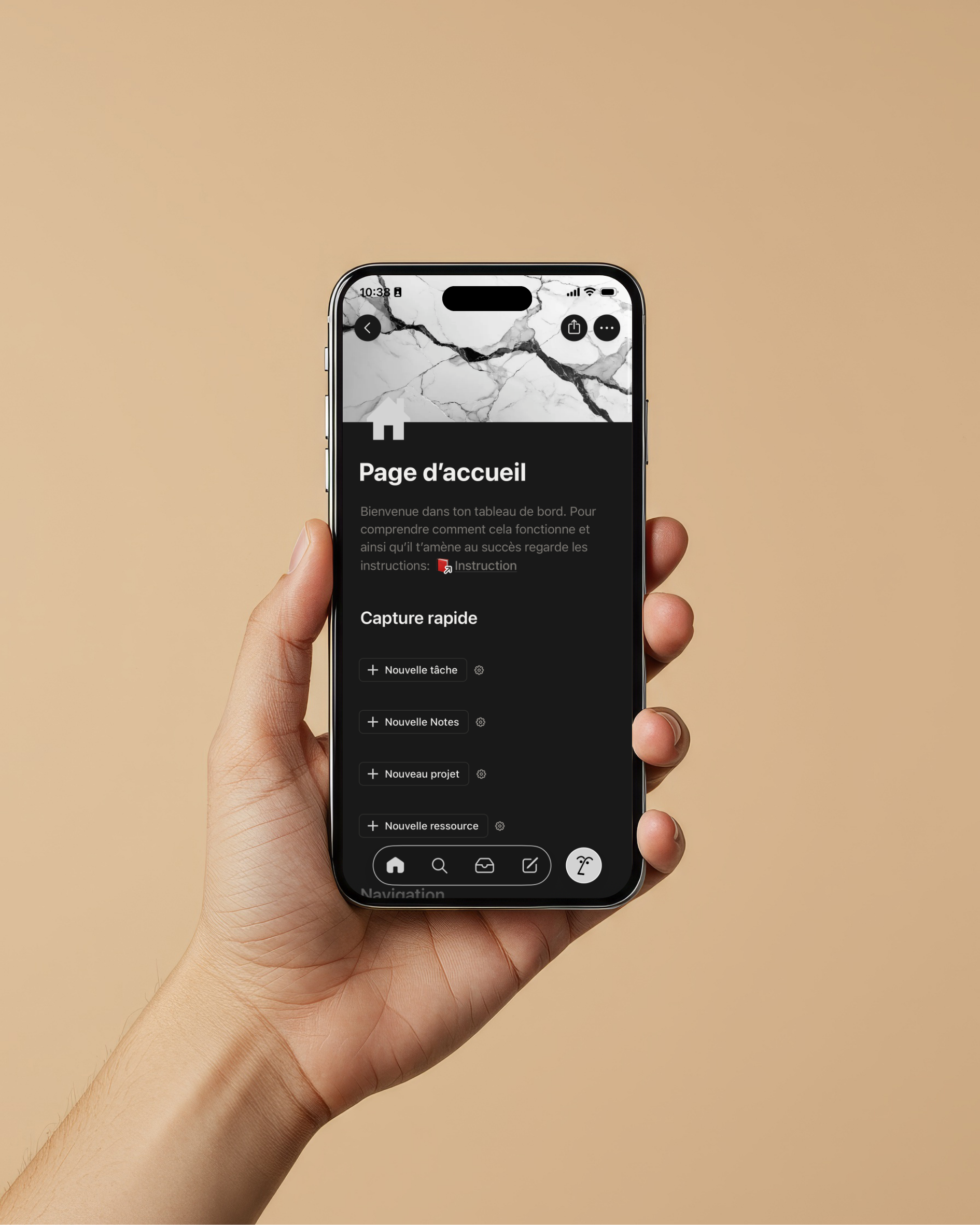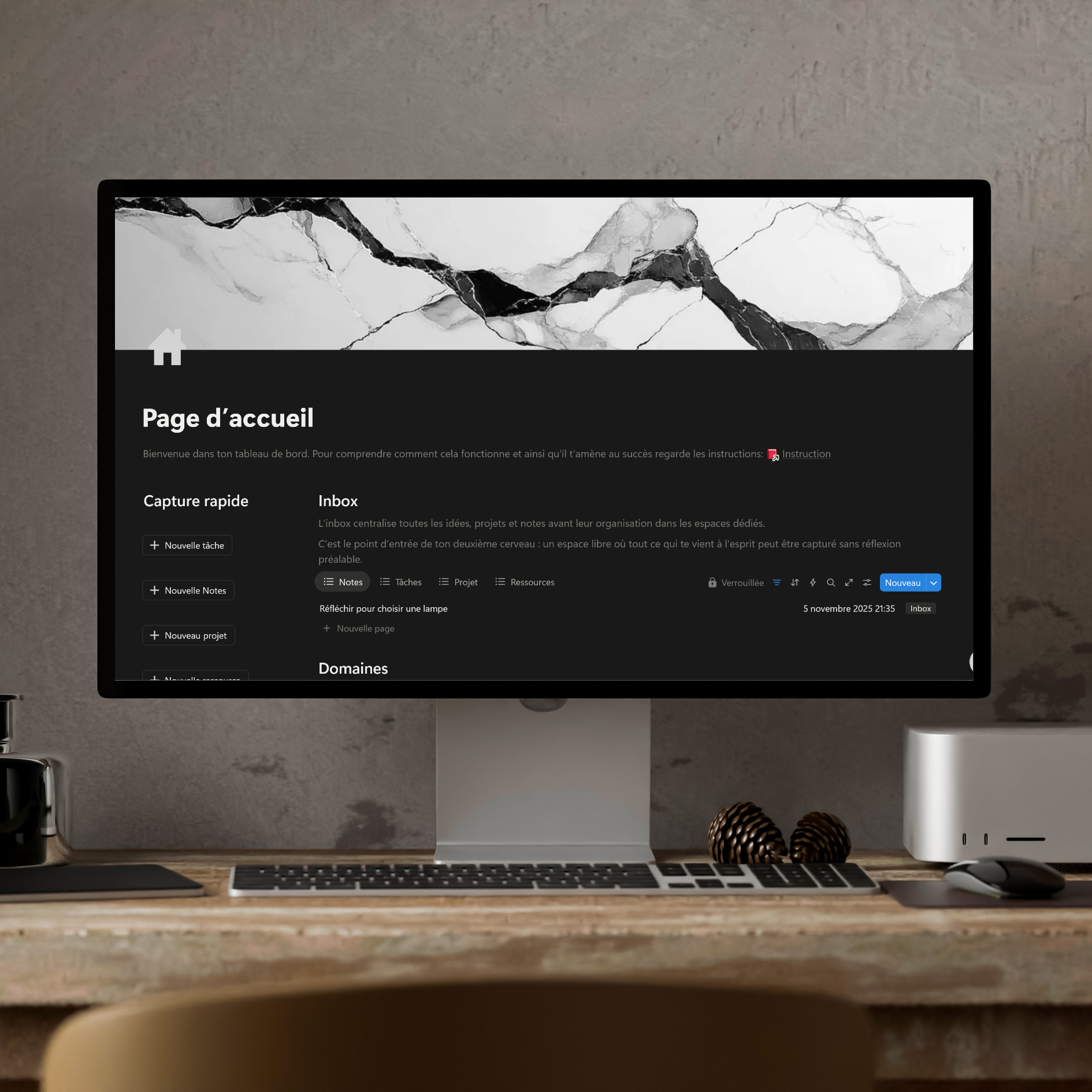 Conçue pour t’aider à penser mieux, agir avec clarté et ne rien laisser se perdre, cette template transforme Notion en ton véritable deuxième cerveau.